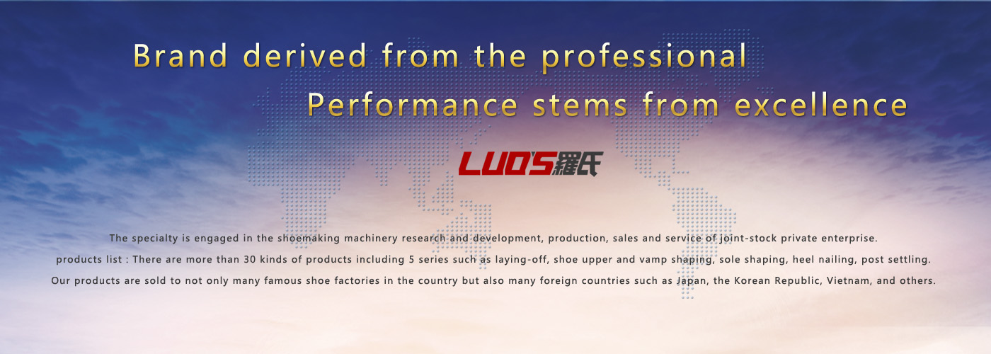 Yancheng City Luoshi Machinery Co.,Ltd. is a stock private enterprise professionally engaged in research, development, manufacture, and sale of shoemaking machineries. The company is located in Jiangsu Province Yancheng City Economic Development zone which is a “country of shoemaking machineries”.Based on its strong technique, under the effort by many high-tech talents, the company continuousoy produces new products. There are more than 30 kinds of products including 5 series such as laying-off, shoe upper and vamp shaping, sole shaping, heel nailing, post settling. These machines are widely used in many shoe enterprises such as leather shoes, sneaker, cloth shoes, rubber overshoes, handicraft shoes.
